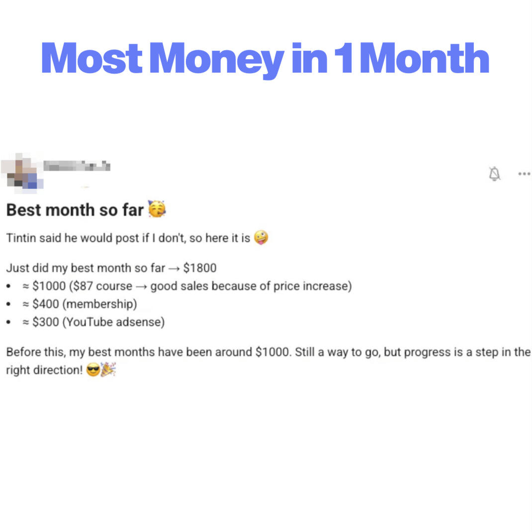 You also get access to regular workshops all run by Tintin, where we interview $100k YouTubers, put students in the hotseat or go deep on a specific part of system.